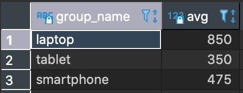 이전 글에서 준비한 product, product_group 테이블을 inner join 후 avg 함수 사용